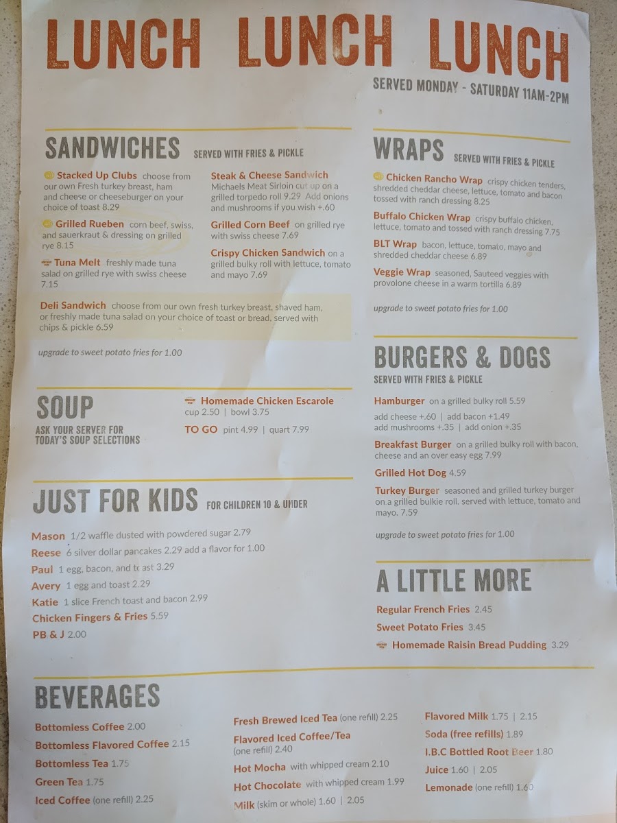 Welcome to Eggs-Up Family Restaurant, a gem nestled in Cumberland, Rhode Island, where breakfast dreams come true. This inviting spot proudly serves an array of delicious options, perfect for families and food lovers alike. Their breakfast menu is a vibrant tapestry of flavors and choices, from the Smart Scrambler featuring fluffy egg whites with spinach and mushrooms, to kid-friendly delights like Mason’s half waffle dusted with powdered sugar.